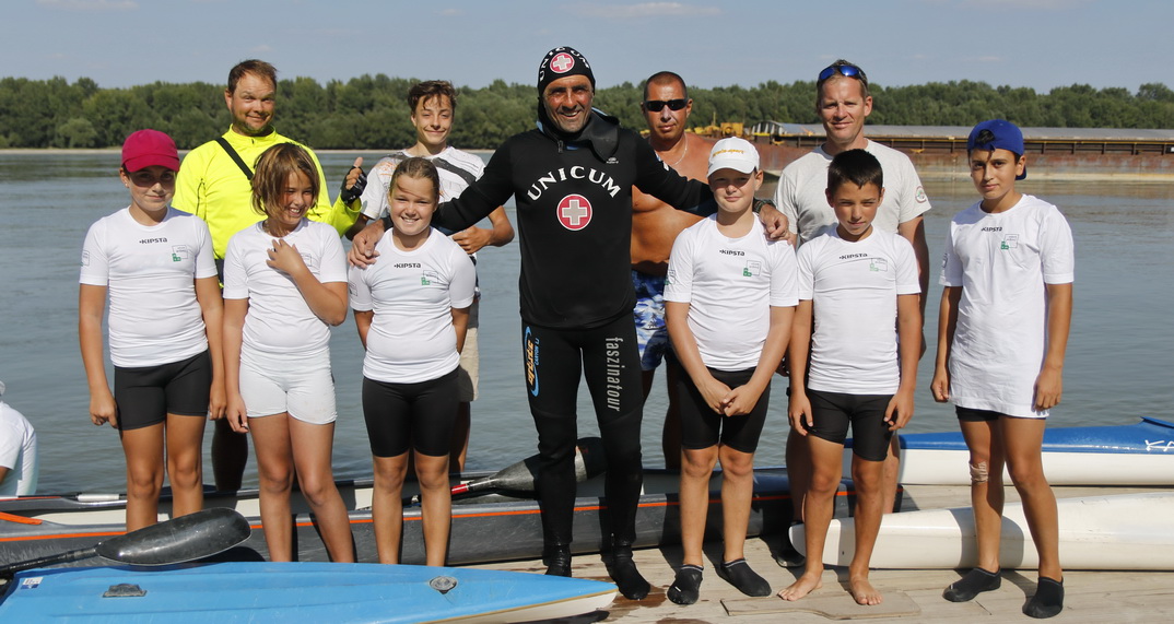Hidvégi-Üstös Pál fáradtan mesélt élményeiről. Elárulta, hogy a ki-beszállás a vízbe, nagyon sok energiát emészt fel. Napi nyolc-tíz órát tölt a vízben, ami most 17-18 fokos. Pénteken indult el Vácról és a tervek szerint csütörtökön Bajáról indulva érkezik meg Mohácsra. A 235 kilométeres távból egy napra 30-40 kilométer jut. Egyes szakaszokon – ahogy Pakson is – evezősök csatlakoznak hozzá.